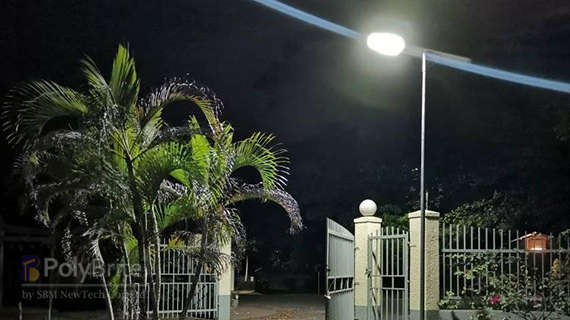 Lampu jalan surya merek Polybrite hemat biaya, ramah lingkungan dan hemat energi.